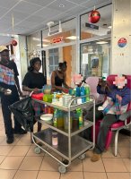 À l’heure du goûter, les élèves ont participé à la distribution de collations aux résidents : quatre-quarts, bûche de Noël et boissons fournies par le lycée. Ce temps simple a permis d’échanger, de discuter et de partager un moment de convivialité et danse entre élèves, professeurs, résidents et animateurs.